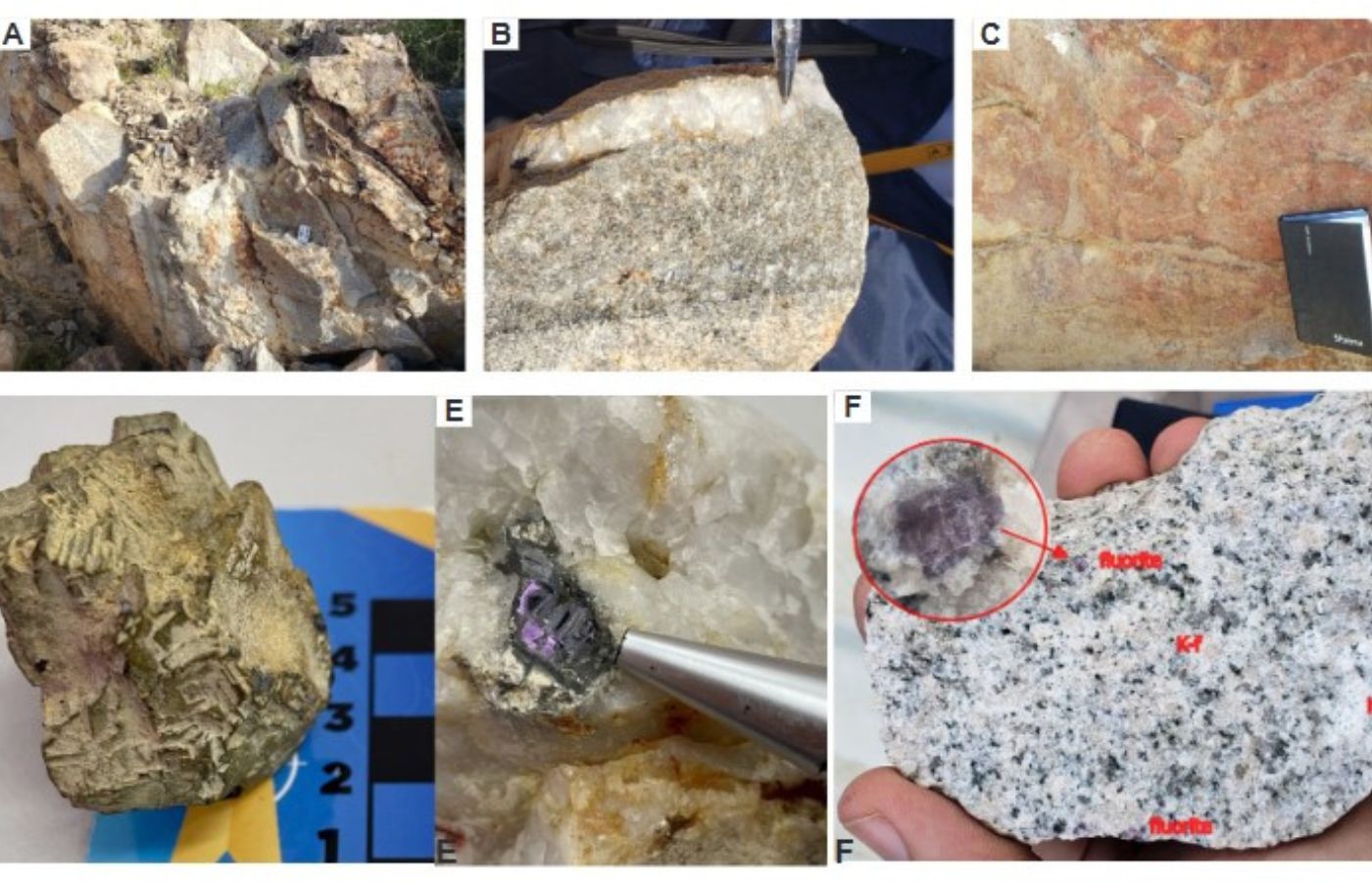 Se realizaron análisis químicos mediante microsonda electrónica, que también incluyeron mercurio (Hg), platino (Pt), cobre (Cu), níquel (Ni), cobalto (Co), arsénico (As), plomo (Pb), azufre (S) y paladio (Pd). Según los autores, los resultados sugieren un modelo genético híbrido, que involucra fluidos magmáticos-hidrotermales y fluidos metamórfico-orogénicos en condiciones epizonales.