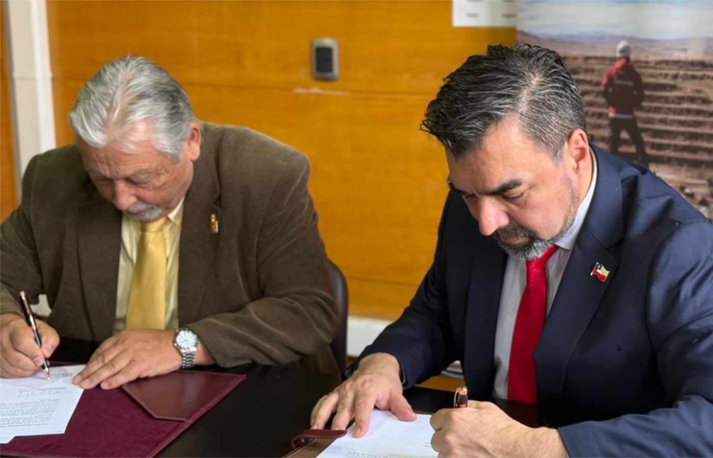 La firma del convenio se materializó entre el director nacional del Sernageomin, Mauricio Lorca y por el decano de la Facultaad de Ciencias , Raúl Morales. En tanto, la implementación y el cumplimiento de este acuerdo estará bajo la responsabilidad directa del Centro de Capacitación de Minería y Geología del Sernageomin, unidad que coordinará con el Centro de Ciencias Ambientales de la Universidad de Chile la ejecución de programas académicos visados técnica y metodológicamente por el Servicio.