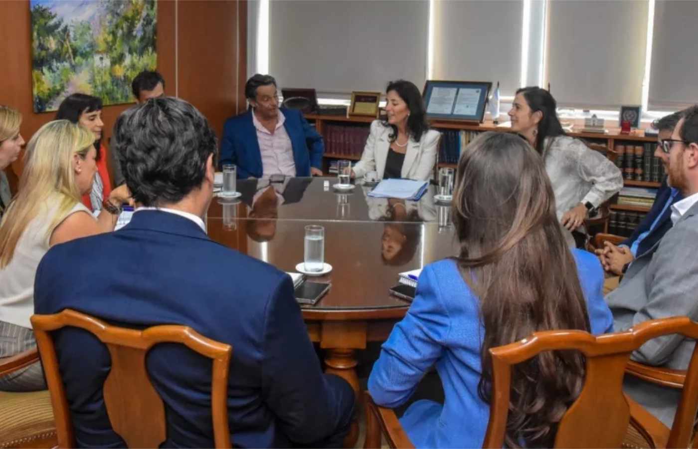 El ministro de Producción y Minería, Ignacio Lupión, junto al secretario de Minería, Gustavo Carrizo, participaron de una reunión con la presidenta de la Corte de Justicia, Teresa Ovejero, y la jueza de Minas, Victoria Mosmann, entre otros funcionarios de ambos poderes, para conocer en detalle el plan de digitalización integral del Juzgado de Minas.